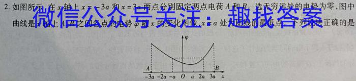 2.如图所示,在x轴上;x=-3a和x=3a两点分别固定两点电荷A和B。选无穷远处的电势为零,图中曲线是x轴上A、B之间各点的电势随x的变化图像,x=a处为图线的最低点。下列说法正确的是