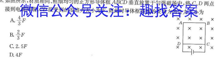 广西国品文化 2023年高考桂柳信息冲刺金卷(五)5z物理试卷答案,免费查试卷答案网站目前收集并整理关于广西国品文化 2023年高考桂柳信息冲刺金卷(五)5z物理得系列试题及其答案,更多试题答案请关注微信公众号:趣找答案/直接访问www.qzda.com(趣找答案)