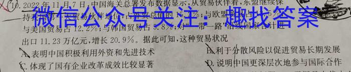 102022年11月7日,中国海关总署发布数据显示,从贸易伙伴看,东盟继续保持我国第一大贸易伙伴地位,占外贸总值的15.2%;与欧盟贸易占13.5%;与美国贸易占12.2%;与韩国贸易占5.8%;对“”沿线国家合计进出口11.23万亿元,增长20.9%。据此可知,这种贸易状况A1表明中国积极利用外资和先进技术B.利于分散风险以促进贸易长期发展体现了国有企业改革成效比较显著D.说明中国更深层次地参与国际合作