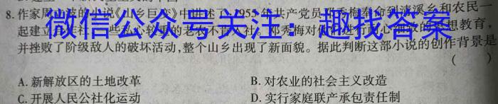 8.作家周立波的小说《山乡巨变》中讲述了:1955年邓秀梅奉命到清溪乡和农民起建立合作社,一些私心较重的老农不肯入社。邓秀梅对他们进行耐心细致的思想教育,并挫败了阶级敌人的破坏活动,整个山乡出现了新面貌。据此判断这部小说的创作背景是()A.新解放区的B.对农业的社会主义改造C.开展人民公社化运动D.实行家庭联产承包责任制