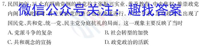7.民国初年,35个有明确党纲的政党均主张振兴实业、普及教育、中央集权,推崇政党内阁。与此同时,各主要政党的整合也在快速进行。1912年秋,北京政坛上出现了国民党、共和党、统一党、民主党分庭抗礼的局面。这一现象主要反映了当时A.党派斗争的复杂B.社会转型的加快C.共和观念的宣扬D.政党政治的活跃