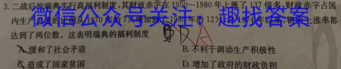 3.二战后的瑞典实行高福利制度,其财政赤字在1950~1980年上涨了137倍多,财政赤字占国内生产总值的比例从1970年的7%增加到了1980年的12%,自1974年以来,物价上涨率都的12达到了两位数。这表明瑞典的福利制度AA缓和了社会矛盾B.不利于调动生产积极性飞造成了国家贫困D.增加了政府的财政负担