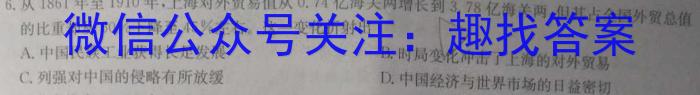6.从1861年至1910年,上海对外贸易值从0.74亿海关两增长到3.78亿海关两,但其占全国外贸总佰的比重却从60%下降至45%左右。这一变化折射出A.中国民族工业获得长足发展B.时局变化冲击了上海的对外贸易C.列强对中国的侵略有所放缓D.中国经济与世界市场的日益密切