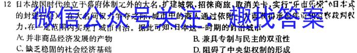 12日木战国时代独立于幕府体制之外的大名,扩建城郭,招徕商旅,取消关卡,实行“乐由乐烧”日本式的封建行会)。在大名间权力争夺之际,城市中的商人通过依附一方而获得承包年贡和监察裁判权力,在一定范围内实现了城市自治。据此可知,日本这一时期的朗治城市A.并非商品经济发展的产物B.兼具专制与民主的双重性C.缺乏稳固的社会经济基础D.阻碍了中央集权制的形成