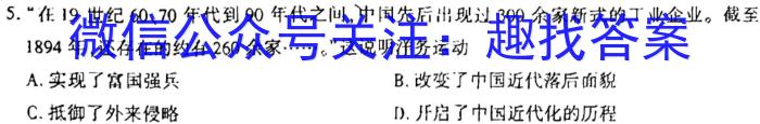 5.“在19世纪60、70年代到90年代之间,中国先后出现过300余家新式的丁业企业。截至1894年,还存在的约有260余家……,”这说明洋务运动A.实现了富国强兵B.改变了中国近代落后面貌C.抵御了外来侵略D.开启了中国近代化的历程