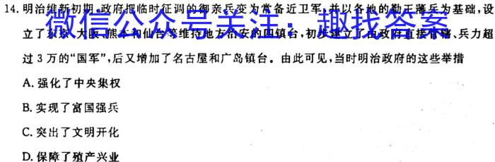 湖南省2022-2023学年高一7月联考(23-580A)历史试卷答案,我们目前收集并整理关于湖南省2022-2023学年高一7月联考(23-580A)历史得系列试题及其答案,更多试题答案请关注微信公众号:趣找答案/直接访问www.qzda.com(趣找答案)