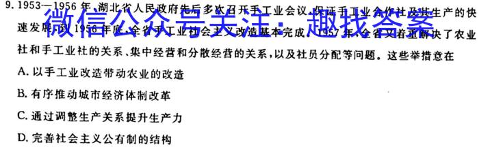 9.1953—1956年,湖北省人民政府先后多次召开手工业会议,保证手工业合作社及其生产的快速发展,到1956年底,全省手工业社会主义改造基本完成。1957年,全省又着重解决了农业社和手工业社的关系、集中经营和分散经营的关系,以及社员分配等问题。这些举措意在A.以手工业改造带动农业的改造B.有序推动城市经济体制改革C.通过调整生产关系提升生产力D.完善社会主义公有制的结构