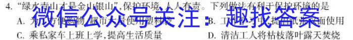 4.“绿水青山才是金山银山”,保护环境,人人有责。下列做法有利于保护环境的是A.为了方便购物,超市大量使用塑料袋B.工作学习中,提倡纸张双面使用C.乘私家车上班上学,提高生活质量D.清洁工人将枯枝落叶露天焚烧
