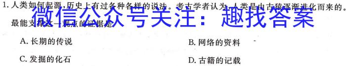 1.人类如何起源,历史上有过各种各样的说法。考古学者认为,人类是由古猿逐渐进化而来的。最能支撑这一观点的证据是A.长期的传说B.网络的资料C.发掘的化石D.古籍的记载