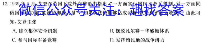 12.1939年5月,艾登在英国下院外交辩论中指出,“一方面实行国民义务兵役制,另一方面同俄国缔结协定,这就是御敌力量”,“如果英法俄能够达成谅解,就是和平的大收获”。由此可知,艾登主张A.建立集体安全机制B.摆脱凡尔赛一华盛顿体系C.参与国际军备竞赛D.发挥殖民地的战争潜力