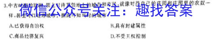 3.中古时期的欧洲,对待其领地上的坡市和市民,就像对待自己的庄园和庄园里的农奴一样,甚至可以处理城市,据此可知当时的域市A.已获得自治权具有封建属性C.商品经济复兴D.不受王权控制