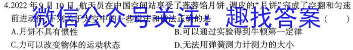 4.2022年9月10日,航天员在中国空间站享受了莲蓉馅月饼,调皮的“月饼”完成了空翻和匀速前进动作,下列关于太空中的一些说法和做法正确的是()A.月饼不具有惯性B.可以通过实验得到牛顿第一定律C.力可以改变物体的运动状态D.无法用弹簧测力计测力的太小