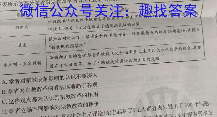 12.下表所示为部分学者对宗教改革的看法,据此可以被认定的历史结论是1)A.学者对宗教改革影响的认识不断深入B.学者对宗教改革的看法逐渐趋于客观C.这些观点都未认识到宗教改革的作用D.学者立场不同影响对宗教改革的评价