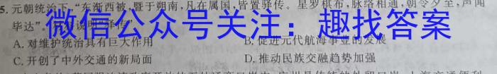 A5.元统治下,东渐西被,暨于朔南,凡在属国,皆置驿传。星罗棋布,脉络相通,朝令夕至,声闻毕达”。材料说明“驿传”A.对维护统治具有巨大作用B.促进元代航海事业的发展C.开创了中外交通的新局面D.推动民族交融趋势加强