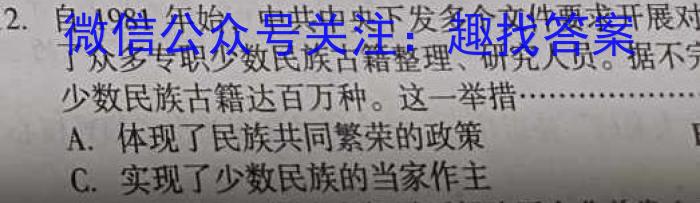 12.自1981年始,下发多个文件要求开展对了众多专职少数民族古籍整理、研究人员。据不少数民族古籍达百万种。这一举措….........A.体现了民族共同繁荣的政策C.实现了少数民族的当家作主