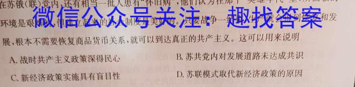 14.在苏俄(联)党内,还有相当一批人患有“怀旧病”,他们认为在那个“英雄年代”里,所面临的环境是艰难的,但建立起来的社会制度是美好的。只要战争一结束,生产就会得到恢复和发展,根本不需要恢复商品货币关系,就可以到达真正的共产主义,这可以用来说明A.战时共产主义政策深得民心B.苏共党内对发展道路未达成共识C.新经济政策实施具有盲目性D.苏联模式取代新经济政策的原因