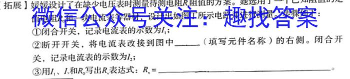 【拓展】媛媛设计了在缺少电压表时测量待测电阻阻值的方案。她选用了一个已知阻值的定值电阻R0和一块电流表等器材,设计出如图丁所示电路并进行测量。步骤如下:①闭合开关,记录电流表的示数为l1;②断开开关,将电流表改接到图中(填写元件名称)的右侧。闭合开关,记录电流表的示数为l2;③用I1、I、和R0写出表达式:R1=。