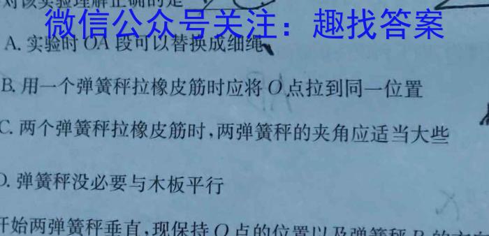 接在O点.(1)对该实验理解正确的是BCA.实验时OA段可以替换成细绳。B.用一个弹簧秤拉橡皮筋时应将o点拉到同一位置C.两个弹簧秤拉橡皮筋时,两弹簧秤的夹角应适当大些D.弹簧秤没必要与木板平行
