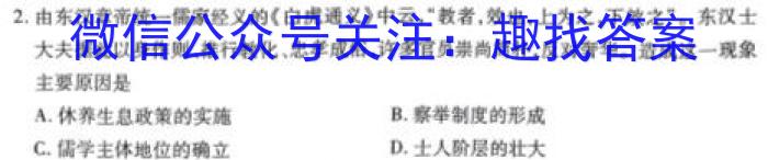 2.由东汉章帝统一儒家经义的《白虎通义》中云,“教者,效也,上为之,下效之”。东汉士大夫据此以身作则、推行教化、忠孝成俗,许多官员崇尚简朴,反对奢华。造成这一现象主要原因是A.休养生息政策的实施B.察举制度的形成C.儒学主体地位的确立D.士人阶层的壮大