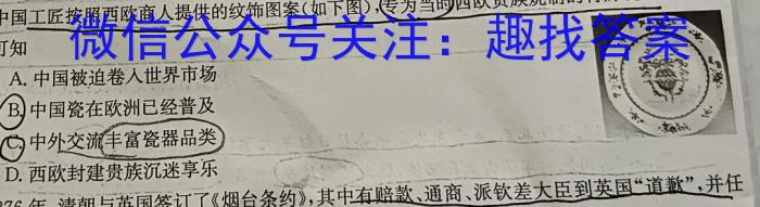 6.中国瓷器享誉古代世界。随着新航路开辟,明清时期出现纹章瓷,它是外销瓷的个种类,是中国工匠按照西欧商人提供的纹饰图案(如下图),专为当时西欧贵族烧制的特殊瓷器。据此可知A.中国被迫卷人世界市场B中国瓷在欧洲已经普及中外交流丰富瓷器品类D.西欧封建贵族沉迷享乐