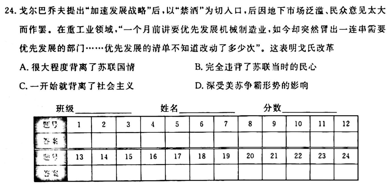 - 正确教育 2024年高考预测密卷一卷(河北地区专用)历史(河北)答案考试试卷