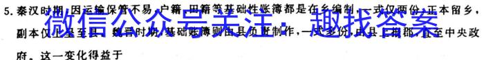 5.秦汉时期,因运输保管不易,户籍、田籍等基础性账簿都是在乡编制,一式仅两份,正本留乡,副本仅上呈至县。魏晋时期,基础账簿则由县负责制作,一式多份,由县上报郡,直至中央政府。这一变化得益于A.书写材料的进步B.户籍制度的完善C.监察制度的发展D.行政效率的提高