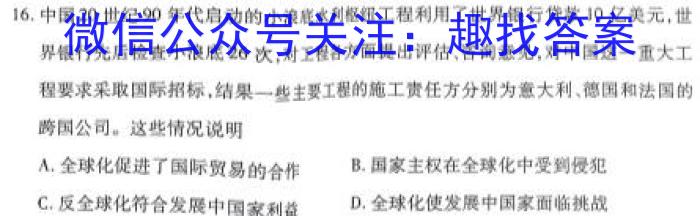 16.中国20世纪90年代启动的小浪底水利枢纽工程利用了世界银行贷款10亿美元,世界银行先后检查小浪底26次,对工程各方面提出评估、咨询意见,对中国这一重大工程要求采取国际招标,结果一些主要工程的施工责任方分别为意大利、德国和法国的跨国公司。这些情况说明A.全球化促进了国际贸易的合作B.国家主权在全球化中受到侵犯C.反全球化符合发展中国家利益D.全球化使发展中国家面临挑战