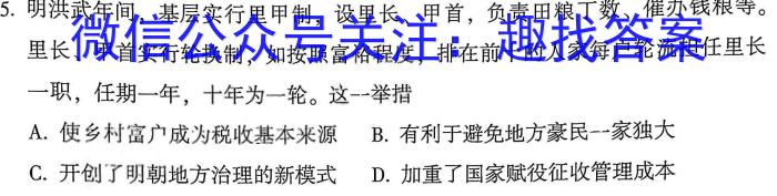 5.明洪武年间,基层实行里甲制,设里长、甲首,负责田粮丁数、催办钱粮等。里长、甲首实行轮换制,如按照富裕程度,排在前十的人家每户轮流担任里长一职,任期一年,十年为一轮。这一举措A.使乡村富户成为税收基本来源B.有利于避免地方豪民一家独大C.开创了明朝地方治理的新模式D.加重了国家赋役征收管理成本