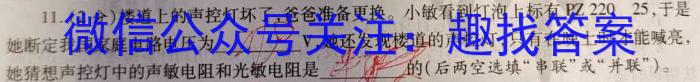 11.(2分)楼道上的声控灯坏了,爸爸准备更换。小敏看到灯泡上标有PZ22025,于是她断定我国家庭电路电压为20)V,她还发现楼道的声控灯,只有在晚上时才能喊亮,她猜想声控灯中的声敏电阻和光敏电阻是的(后两空选填“串联”或“并联”)。
