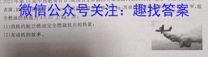 22.2022年第14届中国航展首日,我国自主研制的大型水陆两栖灭火机“鲲龙”号进行低空投水表演,如图。若航行20min,,飞机消耗航空燃油900kg,发动机的平均功率为1.510^7W,航空燃油的热值为410^7J/kg。。求:(1)消耗的航空燃油完全燃烧放出的热量;(2)发动机的效率。