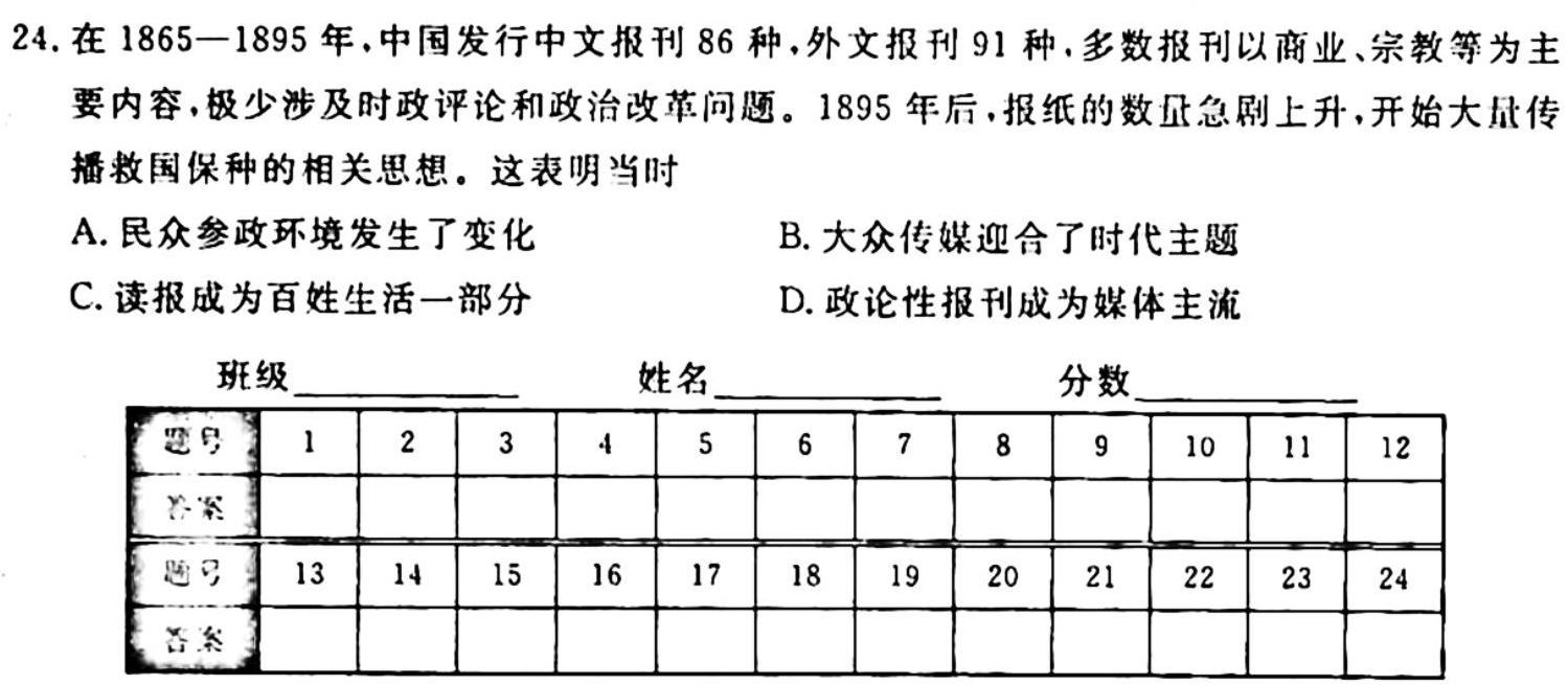 - 正确教育 2024年高考预测密卷一卷(河北地区专用)历史(河北)答案考试试卷