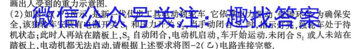 (2)如图-2(甲)所示,是新一代代步工具电动独轮车,它依靠电力驱动,低碳环保.为确保安全,该独轮车安装有电源开关S1和压力开关S2,,当手动闭合S1时,指示灯亮,独轮车处于待机状态;此时人再站在踏板上,S2,自动闭合,电动机启动,车开始运动.未闭合S1或人未站在踏板上,电动机都无法启动.请根据上述要求将图-2(乙)电路连接完整.