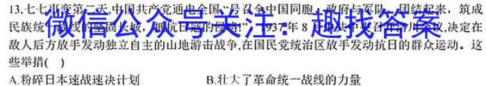 13.七七事变第二天,通电全国,“号召全中国同胞、政府与军队,团结起来,筑成民族统一战线的坚固长城,抵抗日寇的侵略!”。1937年8月召开洛川会议,决定在敌人后方放手发动独立自主的山地游击战争,在国民党统治区放手发动抗日的群众运动。这些举措()A.粉碎日本速战速决计划B.壮大了革命统一战线的力量