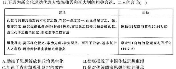 【热荐】2023年贵州省高二年级阶段性联考(一)(政治)考试试卷