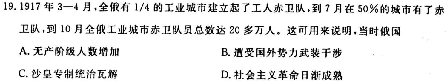 ”这一现象表明当时A.中国已处在社会转型的前夜B.恢复高考制度的群众基础广泛C.思想上的拨乱反正亟待开展D.改革开放推行过程中存在阻力【“皖八”高三第一次大联考·历史第4页(共6页)】HD