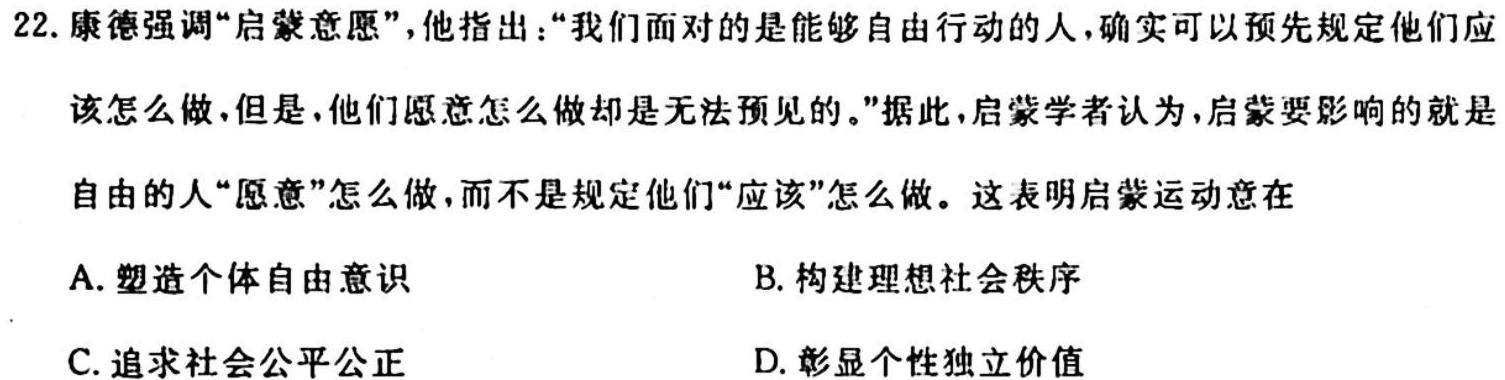 1、【热荐】安徽省皖豫名校联盟体2024届高三第一次联考(政治)选择部分