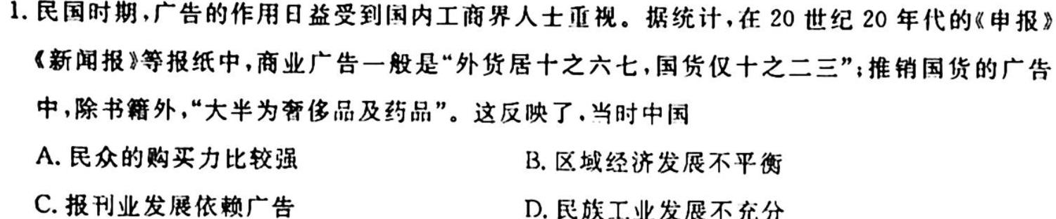 (6分,任答三点即可)20.(1)历史背景:婆罗门教和种姓制度使婆罗门拥有特权;社会经济发展,吠舍种姓等力量增强,对传统社会等级秩序不满;印度社会出现变革的潮流;佛教提倡众生平等,获得广泛认同
