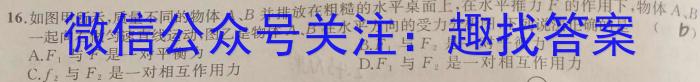 16.如图甲所示,质量不同的物体A、B并排放在粗糙的水平桌面上,在水平推力F的作用下,物体A、B起向左做速直线运动,图乙是物体A、B在水平方向的受力分析图,下列说法正确的是是(bB.F1与F2是一对平衡力A.F1与F是一对平衡力D.F1与F2是一对相互作用力C.f2与F2是一对相互作用力