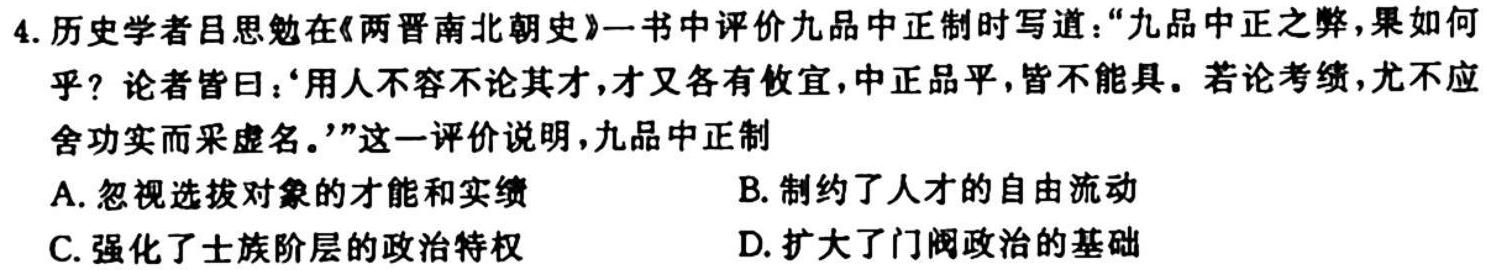 非选择题部分三、非选择题(本大题共3小题,其中26题12分,27题16分,28题17分,共45分)26.晚清时期,西方科技与思潮传入中国,与中国传统碰撞、冲突、交融,促进了近代中国社会的重大变革
