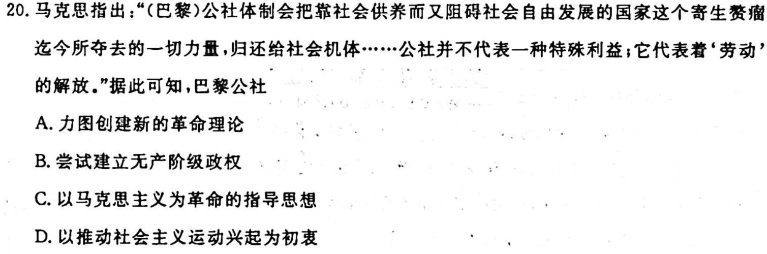 1、【热荐】河南青桐鸣2024届普通高等学校招生全国统一考试 青桐鸣大联考(高三)(10月)(政治)选择部分