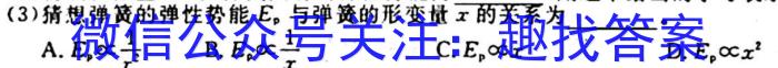 (3)猜想弹簧的弹性势能E。,与弹簧的形变量x的关系为。A.Epc1r^2B.Epc1xC.EpcxD.Epcx(1)用游标卡尺测出滑块上遮光条的宽度d如图乙所示,则d=cm;