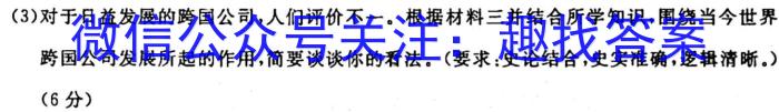 (3)对于日益发展的跨国公司,人们评价不一。根据材料三并结合所学知识,围绕当今世界跨国公司发展所起的作用,简要谈谈你的看法。(要求:史论结合,史实准确,逻辑清晰。)(6分)