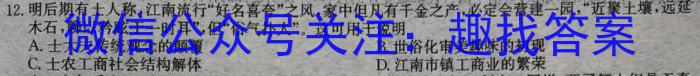 12.明后期有士人称,江南流行“好名喜夸”之风,家中但凡有千金之产,必定会营建一园,近聚土壤,远延木石,聊以矜眩于一时耳”,但“俗气扑人”。这可用于说明A.士大夫传统观念的颠覆B.世俗化审美趣味的初现C.士农工商社会结构解体D.江南市镇工商业的紫荣