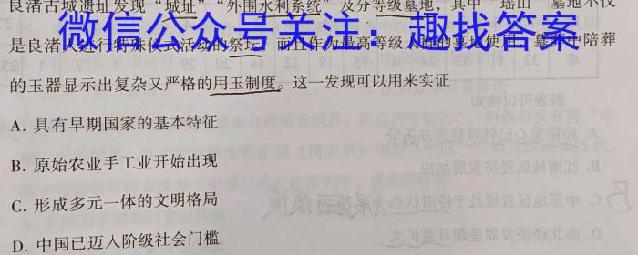 古城遗址发现“城址”“外围水利系统”及分等级墓地,其中“瑶山”墓地不仅是良渚人进行特殊仪式活动的祭坛,而且作为最高等级人群的墓地使用,墓葬中陪葬的玉器显示出复杂又严格的用玉制度。这一发现可以用来实证A.具有早期国家的基本特征B.原始农业手工业开始出现C.形成多元一体的文明格局D.中国已迈人阶级社会门槛