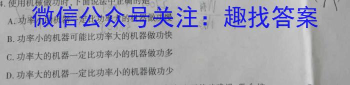 4.使用机械做功时,下面说法中正确的是A.功率小的机器一定定比功率大的机器做功慢B.功率小的机器可能比功率大的机器做功快C.功率大的机器一定比功率小的机器做功多D.功率大的机器一定比功率小的机器做功少