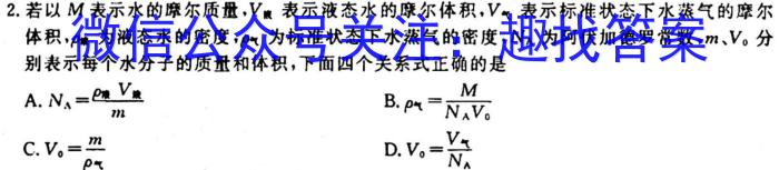 2.若以M表示水的摩尔质量,VV表示液态水的摩尔体积,表示标准状态下水蒸气的摩尔体积,为液态水的密度,为标准状态下水蒸气的密度,NA为阿伏加德罗常数,m、V0分别表示每个水分子的质量和体积,下面四个关系式正确的是A.NA=VRB.甲=MNAV0C.V0=m水D.v0=V7NA