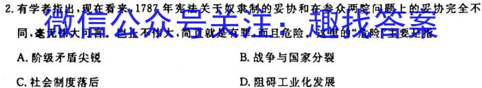 2.有学者指出,现在看来,1787年宪法关于奴隶制的妥协和在参众两院问题上的妥协完全不同,毫无伟大可言。岂止不伟大,简直就是有罪,而且危险。这里的“危险”主要是指A.阶级矛盾尖锐B.战争与国家分裂C.社会制度落后D.阻碍工业化发展