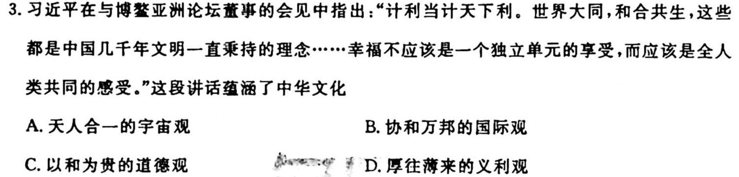 1、【热荐】衡水金卷先享题分科综合卷2024年普通高等学校招生全国统一考试模拟试题(一)(政治)选择部分