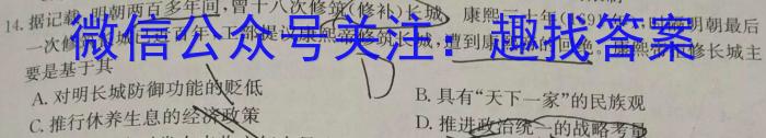 14.据记载,明朝两百多年间,曾十八次修筑(修补)长城、康熙三十年(1691年),时隔明朝最后明朝最后一次修筑长城已近百年,工部提议康熙帝修筑长城,遭到康熙帝的回绝。康熙帝拒修长城主要是基于其A.对明长城防御功能的贬低DB.具有“天下一家”的民族观C.推行休养生息的经济政策D.推进政治统一的战略考量