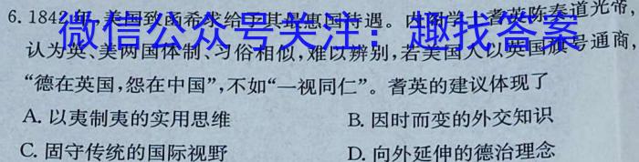 6.1842年,美国致函希求给予其最惠国待遇。内阁学士耆英陈奏道光帝,认为英、美两国体制、习俗相似,难以辨别,若美国人以英国旗号通商,“德在英国,怨在中国”,不如“一视同仁”。耆英的建议体现了A.以夷制夷的实用思维B.因时而变的外交知识C.固守传统的国际视野D.向外延伸的德治理念